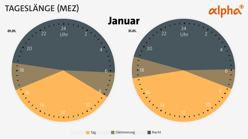 Hier ein anschaulicher Vergleich von Sonnenauf- und -untergängen – so wirkt sich die uhrenunstellung auf unseren Tag aus.